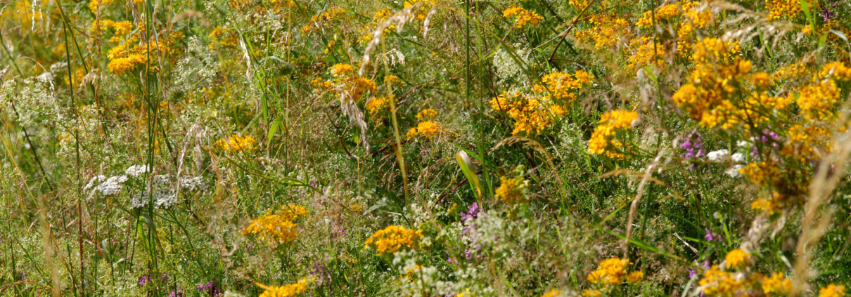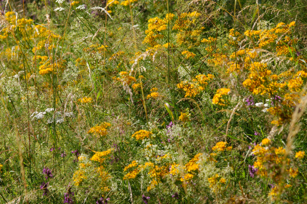 En contexte naturel, les végétations rencontrées sur terrains acides, ensoleillés et sur sols ordinaires sont souvent composées de fleurs jaunes et blanches : Achillée millefeuille, Silène enflé, Séneçon à feuilles d’adonis, Genêts ailé et purgatif, Millepertuis perforé, mélangées à de hautes graminées (fétuques, avoines, canches…). Composées en prairies ou en massifs, les floraisons abondantes et lumineuses de ces quelques plantes attirent le regard tout au long de l’été voire même durant les premières semaines automnales.